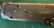 This is an OLLLLLLDDDDDDD Iver Johnson .38 a customer brought in.As you can see in the “before” picture above, the hard-chrome plating was severely damaged and had come off in many places.Where there was no chrome the bare metal was corroded and heavily pitted.I removed the remaining chrome plating and smoothed out as much of the pitting as possible before completing a final polish.Then I cold-blued the firearm.The “shiny” spot under the end of the barrel is a reflection and not a light spot in the finish!