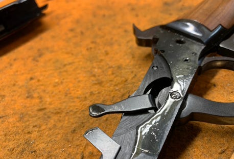 This is an OLLLLD percussion blackpowder 10 gage shotgun a customer brought in.The complaint was that it fails to extract.Upon inspection and disassembly I discovered someone had tried to repair the face of the extractor at some point. The guide pin was either missing or lost and they used a nail to “replace it.”Additionally, the extractor shaft was threaded on the business end, and while the threads held, they didn’t align the face of the extractor with the cylinders and the nail (you can see it above), was bent.Coupled with all this, the extractor operator you see above was broken in half, so even with the other parts correct, it would never actually extract.And, the top of the extractor where someone tried to repair it with a nail, had been cracked.