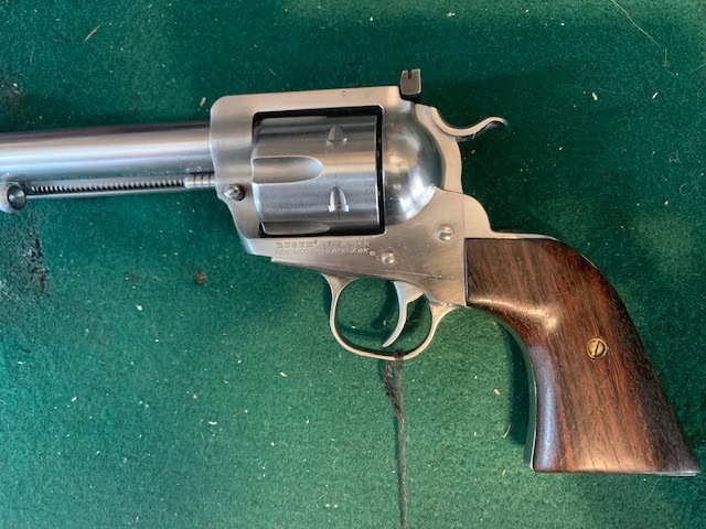 This is a Ruger Blackhawk single-action revolver.The elderly gentleman who owns it wanted a larger and lower hammer spur, making it easier to reach the hammer to cock.So I modified a Ruger Bisley hammer made for a New Vaquero that can come stock with a Bisley grip frame and hammer, to fit this Blackhawk.Stock Bisley hammers will only fit a New Vaquero Bisley grip frame without modification.Came out great, and the gentleman was very happy with the results; so much so he had me do the same to all his Ruger single actions.How about yours?Think you might like the same?Labor was a little over $100, and then there is the cost of the replacement hammer, which is about $40.00.Give me a call and let’s see about doing yours up too!