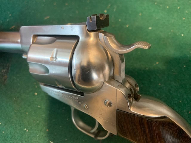 This is a Ruger Blackhawk single-action revolver.The elderly gentleman who owns it wanted a larger and lower hammer spur, making it easier to reach the hammer to cock.So I modified a Ruger Bisley hammer made for a New Vaquero that can come stock with a Bisley grip frame and hammer, to fit this Blackhawk.Stock Bisley hammers will only fit a New Vaquero Bisley grip frame without modification.Came out great, and the gentleman was very happy with the results; so much so he had me do the same to all his Ruger single actions.How about yours?Think you might like the same?Labor was a little over $100, and then there is the cost of the replacement hammer, which is about $40.00.Give me a call and let’s see about doing yours up too!