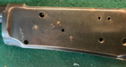 This is an OLLLLLLDDDDDDD Iver Johnson .38 a customer brought in.As you can see in the “before” picture above, the hard-chrome plating was severely damaged and had come off in many places.Where there was no chrome the bare metal was corroded and heavily pitted.I removed the remaining chrome plating and smoothed out as much of the pitting as possible before completing a final polish.Then I cold-blued the firearm.The “shiny” spot under the end of the barrel is a reflection and not a light spot in the finish!