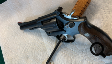 These are pictures of an old S&W Model 15 that I purchased years ago as a bucket of rust.Originally I’d cold-blued it, but after setting up my caustic blueing rig I decided to “test” the system using this firearm.What do you think?After removing all the cold blueing and polishing the surfaces to a matte finish “in the white,”I “hot blued” it, and I think it came out awesome!My charges for blueing can be found on my “prices” page and don’t include disassembly, removing the blueing, and prepping the metal to in-the-white as every firearm uniquely presents individual challenges to prepping (pits, rust removal, and polishing).Plus, you have to decide how much polishing you want/need done, from matte to bright mirror final finish.This one is a satin finish.