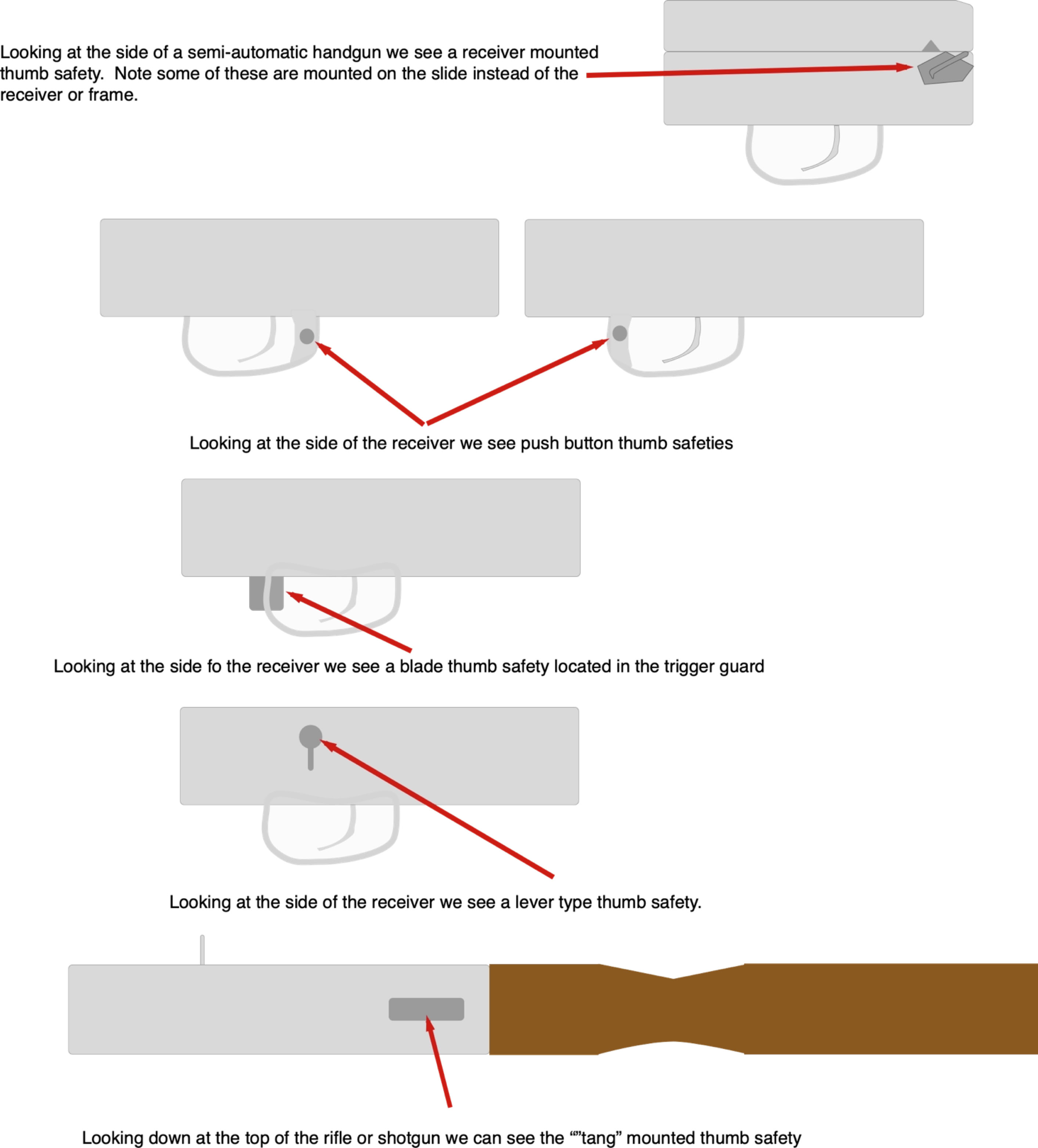 First we must all be aware that there is no such thing as an infallible unfailing safety. Just ask the operators at Chernobyl or 3-Mile Island. Even multiple safeties can and do fail all at the same time. NEVER depend on a mechanical safety or substitute a mechanical safety for your finger and your brain! These considerations addressed let’s consider mechanical safeties.